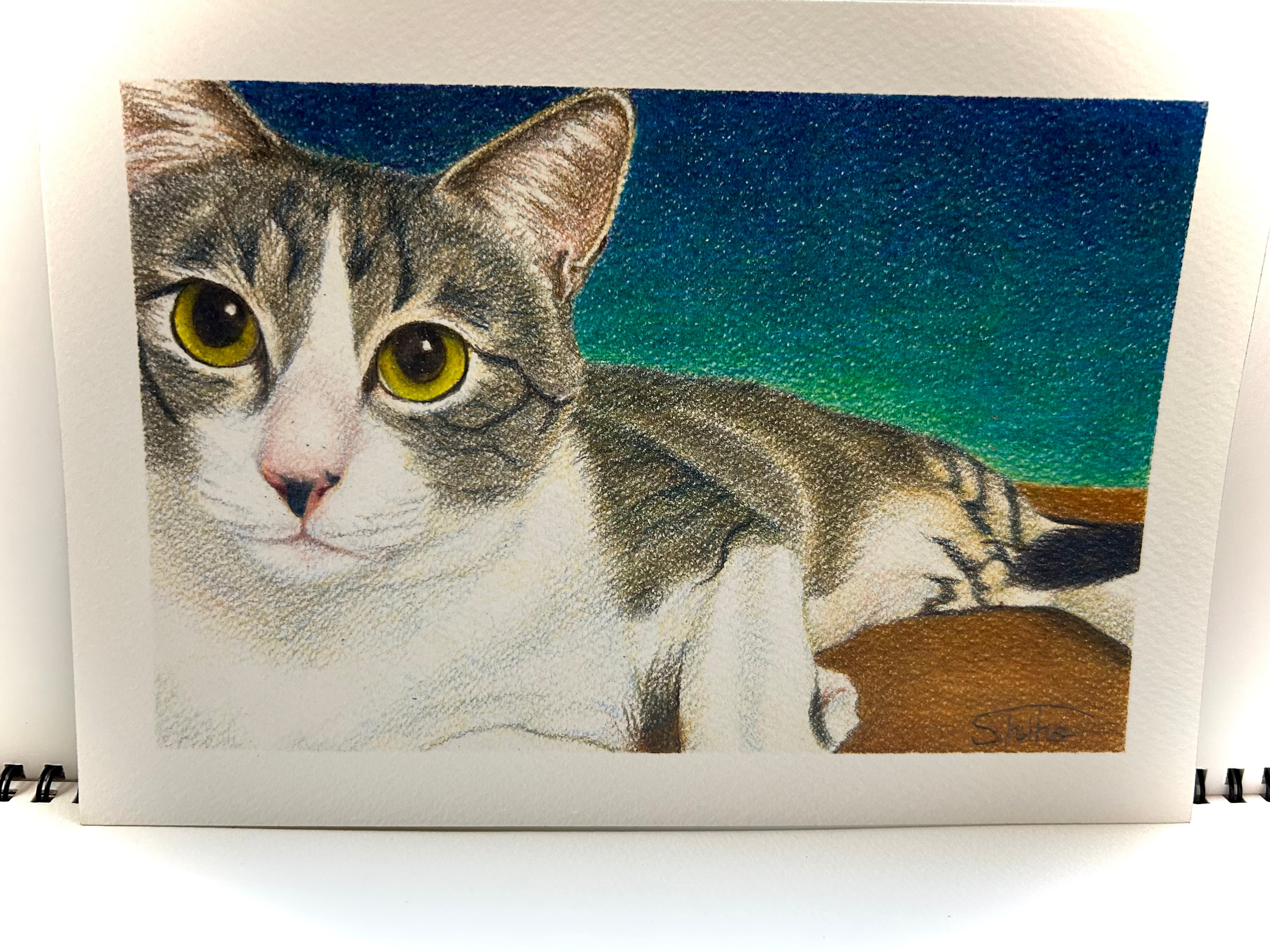 shiho|油性色鉛筆で作品を制作。保護猫をモデルにした作品も手がけ、やさしく深みのある色彩で心に寄り添う世界を届けています。これまでギャラリー展示や公募展などで作品を発表しています。